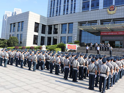 2019年7月24日,懷化市保安主題宣傳日活動暨保安行業(yè)服務(wù)國慶安保工作誓師儀式在市公安局舉行。踐行新使命 忠誠保大慶